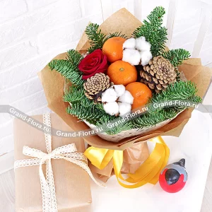 Сказки леса - новогодний букет из хризантемы и еловых веток