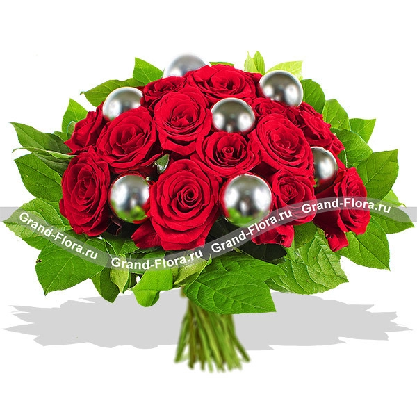 Атмосфера счастья - букет из красных роз и новогодних украшений