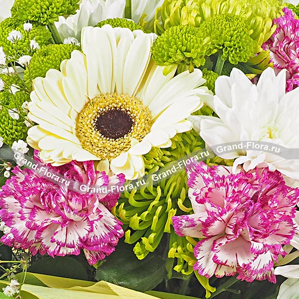 Зеленая долина - букет из гербер, хризантемы и гвоздики